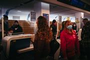Ráno při čekání na tramvaj - červená jede. Procházka Letnou, snídaně a úvodní povídaní při dnešním praktickém focení - šli jsme fotit na Matějskou, zasloužená výborná večeře. Dlouhý den.