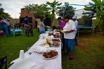je 6h ráno, jdeme dělat oheň, na dnešek jsme pozvali Bokangovy kolegy/ ještě jedu k Číňanům pro ubrus/ mezitím Bokang dodělal kuřata na ohni/ Zoika/ už jsou tady/ se kouří/ a pak bašta, jídla bylo víc než dost a tahle paní sekretářka ho, z mého pohledu, se svou nepozvanou 30letou dcerou, ukradla, v 8večer tam nebyl ani kousek, umírala jsem hlady, koukali jsme pak na kamery, co se s jídlem vlastně stalo/ JL z JAR a Terro/ kterému patří tenhle krásný, fungl nový bourák. Den to byl fajn, ale už je nikdy, všechny, zvát k sobě nebudu, přišla jsem si okradená o svou snahu a čas (na jídlo jsme se skládali) a po dlouhé době to byl kulturní šok...(prý tohle dělají tady lidi běžně, hlavně lidi z určité oblasti, ale aby si někdo odnesl 7-8 krabiček s jídlem? to bylo na mě moc, a párty jsme měli už tolikrát a nikdy se nám tohle nestalo)