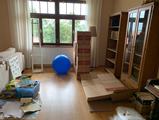 Spíž se zaplňuje. Výroba slizu. Poznávání okolí a jiné zábavy, jaké jde připravit pro děti, když se snažíte vybalit a začít někde žít.
