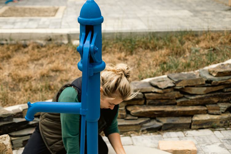 Červenec jak má být. Je po dešti, je zima. Natáhneme si svetry a jdeme pracovat na zahradu. Natřeme pumpu a potom odpočíváme.