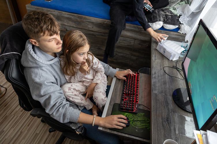 1. Hrajou spolu Minecraft 2. ale nás čeká celodenní focení 3. Sašenka je moje oblíbená modelka 4. po focení valíme balit 5. je to náročné 6. čeká nás přes 400 balíků 7. a už odjezd 8. bylo to hodně náročné 9. večer už hraje sama, Alešek jí ujel