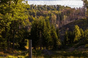 Dnes popojedu na Mezní louku. Vyrážím na hřebenovku. Ohořelé pařezy v kontrastu se zrzavým mechem a zelenými stébly tvoří vlastně hezky barevnou scénu. Pokořila jsem Malou Pravčickou bránu a mířím na Šaunštejn. Můj fotobatoh se osvědčil v praktičnosti pro ukládání a vyndávání foťáku a i když tady byl průlez po žebříku hodně těsný, vešli jsme se všude. Tam dolů za chvíli půjdu. Mariina vyhlídka mi hlásí přiblížení k Jetřichovicím. Ale já si to obejdu přes Pohovku. Lovím ještěrky a motýly. Abych nebyla málo unavená, dám si ještě pár bazénů.