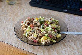 Projdu se po balkoně a jdu pracovat. K obědu je salát. Po práci se namažu a hurá do parku. Policejní koně už netrpělivě vyhlíží, kdy je odvedou do stájí. To na rybnících se večerka neřeší. Já řeším, abych z parku odešla do tmy. Doma vytvářím menší povodeň. Šikovná holčička...