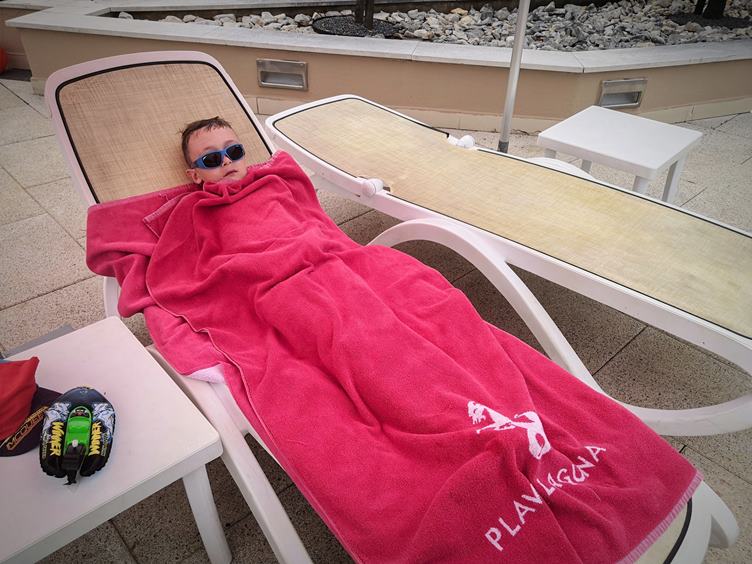 Ráno u bazéna. Čakáme búrku. Našťastie len trochu spŕchlo bez búrky. Ale super ako to schladilo vzduch. Po obede dávame more a stihli sme aj volejbal :o). Na večeru si obliekam šaty, nech ich využijem. A dostávam opušták a idem si vychutnať západ Slnka. Oj, veru je tu krásne.
