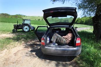 Poslední návštěva kvůli změně mateřské dovolené. Ve Znojmě probíhají moje oblíbené dny partnerských měst. Hned kupuju kus parazánu od Italů z Trenta. Se Zdendem jedu obhlídnout lokace na téma zeleného lesa. Zastavujeme u závlah, které Zdendu moc zajímají. Začíná další sezóna velkého sena. V nádherné lokalitě kolem vinic na Ječmeništi. Sečeme tam téměř 4ha vojtěšky. Při sečení se porouchal jeden z traktorů a tam musíme domluvit opravu. Auto je plné a protože nepojedeme po silnici leze pan Prčík do kufru. Traktor necháme na jelení farmě, kde mají ochočené a hlavně mlsné jeleny. Moje pampeliškové hrátky. Zdravá večeře a smutek Slováků po prohraném zápase s Českem.