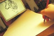 Snídaně...možná se zase pustím do psaní knížky...co bude dneska k jídlu?...beru košili a fičím za Tomem, kde zůstanu po zbytek dne...protože ten pracuje...a já následně taky...malující pracanti a tygr :)...kontrola, jestli se mi vede dobře :D...Aduš čte Kikimu svoji slohovou práci na dorbou noc :D