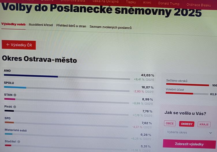 Ráno na zastávce. Zácpy jsou čím dál větší. Rekonstrukce frýdlantských mostů se prý protáhne o 14 dní. Dnes je krásně. Odpoledne. Hraji. Na Youtube je spousta skvělých hitů. Vážení. Vzniká nová vláda. K tomuto tématu se hodí stará rumunská známka a citát Ronalda Reagana: "První povinností vlády je chránit lid, nikoliv řídit životy lidí". Zasmál jsem se nad sdíleným příspěvkem z FB ve stylu, že ve volbách stojí proti sobě Strany Světla a to Koalice Spolu, STAN, Piráti a proti nim Strany Tmy a to hnutí Ano, SPD, Motoristé, Stačilo :-) Tak s tím nesouhlasím. Svět přece není černobílý a mnozí, nyní vlastně většina, to vidí v jiných barvách. Doufejme, že pravda a láska opravdu vítězí, a to v nás. A jen připomínám evangelium podle Matouše, kde Ježíš praví: „Proč vidíš třísku v oku svého bratra, ale trámu ve vlastním oku si nevšímáš?“. Tak jsem se podíval na ostravské volební výsledky.
