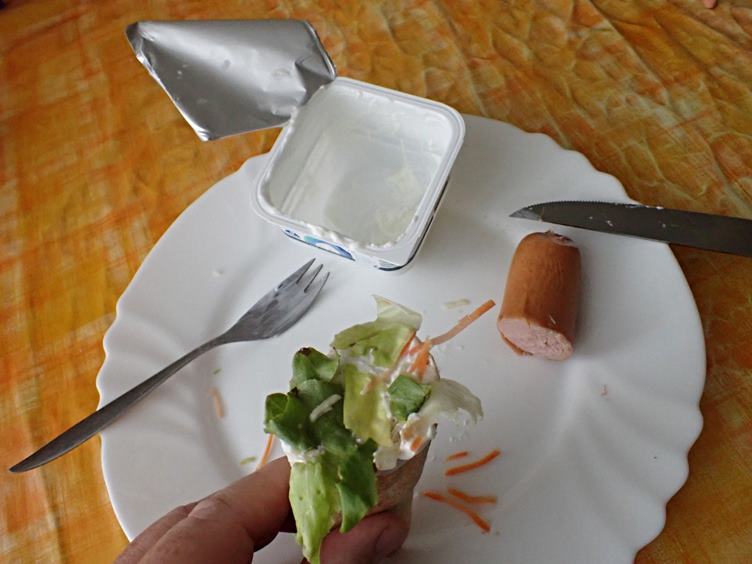 Snídaně - už nemám bolesti po očkování, už můžu i dietní uzeninu... Vymalované pokoje... Na hřbitově... Houby na zahrádce na dvorku... Malování... Dětští cyklisti před našim oknem...