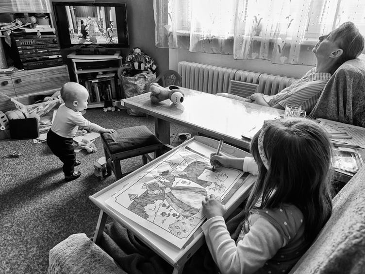 4. Máma odpočívá, Anežka si kreslí, Filip řádí a já čučím na pohádku
