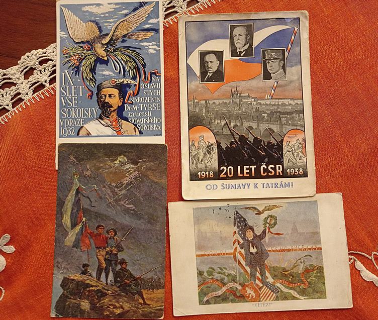 Ráno. Když čekám na zastávce na tramvaj, letí na obloze efektivně zformované hejno ptáků. Zašel jsem na bleší trh na Černé louce. Oběd. Sleduji fotbal. Odpoledne. Večer. Noc. Pohledy s vlasteneckou tématikou, které jsem dnes na blešáku koupil.