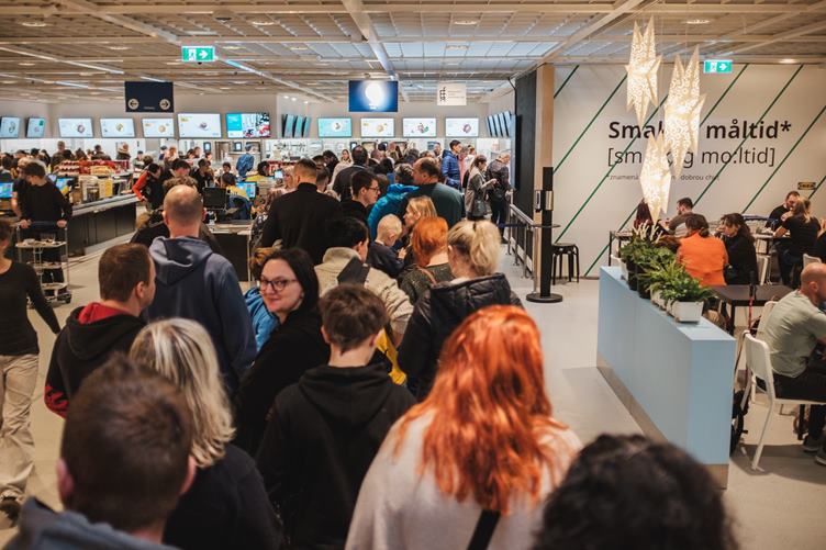 Jedeme do Ikey na oběd a vystojíme si dlouhou řadu. Vendulka si dá lososa s kuskusem, ale je v něm koriandr, takže si moc nepochutná. Já měl masové koule s kaší a byly skvělý.