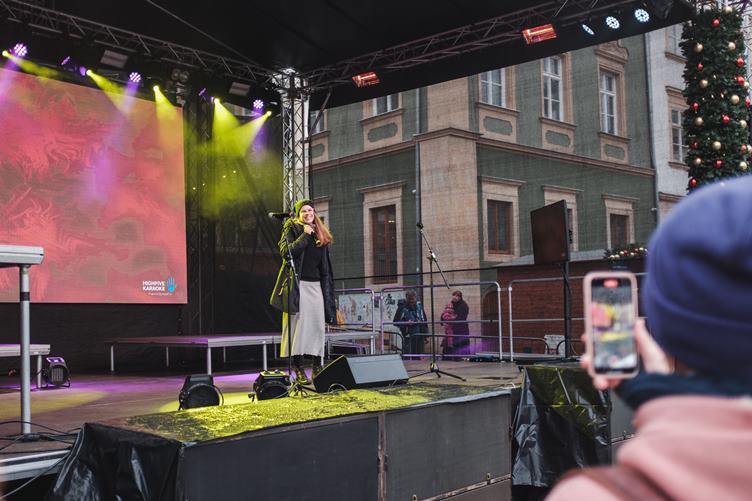 Jedu za Vendulkou, které právě skončila na Zelném trhu hlasový workshop. A protože na tomto náměstí hned začalo vánoční karaoke, vystřihla si tam Vendulka hned dvě písně a já jsem jí to natočil.