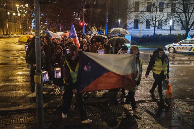 Spíme do 8 a já se pořádně nasnídám a vyjedu do toho deštivého počasí fotit kladení věnců na Rooseveltovu. Po cestě zpět se stavím za ségrou pomoct jí se sestavením fotoknihy. Opravím a odevzdám fotky z věnců a ještě se ségrou ladíme fotoknihu, až ji nakonec odešleme. Eliška si udělala v obýváku žíněnku a cvičí kotoul. Vendulka je od 12 v centru Brna na stánku MONI a změna plánu způsobila, že už se nevrátila domů, a já s Eliškou jedu fotit lampionový průvod, jehož budou holky taky součástí. Dorazím domů mokrý, ale ne zmrzlý. Venku bylo 8 stupňů.