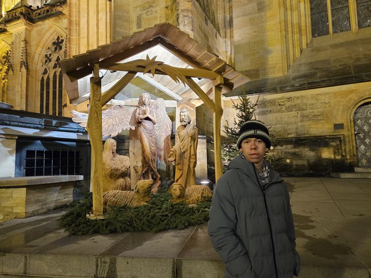Pátek 5.12.2025 Po ránu na Opatově fakt nepříjemně. Mám na Muzeu 6 sekundové rande, potřebuju si vzít od řidiče metra Zdeňka razítko Willíka. Klaplo to. A ještě jsem si prohlédla očesaný vestibul a rozkopané okolí - tramvaj bude! Večer bereme auto a jedeme se s Bártem podívat na Hrad. Nechce se mu, ale má smůlu. Výzdoba mě sice moc nenadchla, kulisy od bratrů Formanů už zavřené, ale atmosféra příjemná.