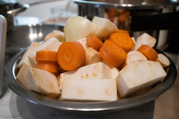 Snídaně. Přijel mi nákup. Pouštím se do projektu Perníková chaloupka. Také potřebuji usušit pomeranč. Šmudla mi uklidí. Připravuji zeleninu. K jídlu je kaše. Vývar se táhne. Původně se mi nechtělo, ale nakonec asi Vánoce neškrtnu.