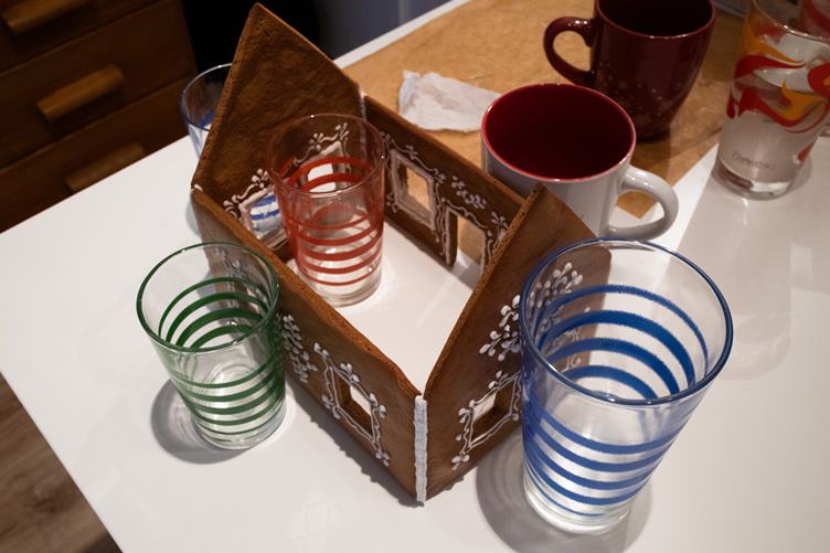 Po včerejšku by měl někdo uklidit...ale mně se nechce, tak ať maká Šmudla. Dodělávám střechu a podstavec. Už se staví. Lepení osvětlení mě trochu potrápilo. Dnes už to mám správně. Připravuji se na zítřek. Ještě udělám stromky, než půjdu spát.