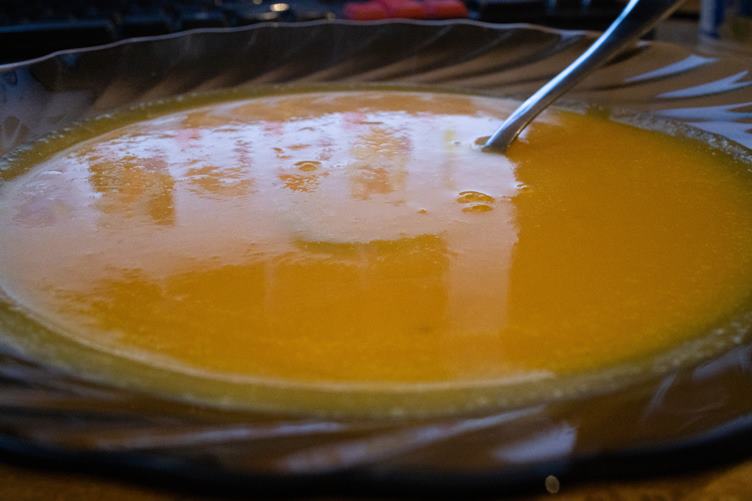 Ten blázínek stále kvete, i když je zazimovaný. Udělám si nápoj s vlákninou...abych ho mohla celý vylít na zem a uklízet zase se Šmudlou půlku bytu. Vyrábím těsta. Z jednoho budou rohlíky. Další se musí odležet. Rohlíčky jsou obzvláště vypečené. Dám si polévku. Přemýšlím nad nákupem.