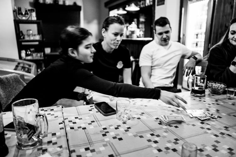 Ráno se Adámkovi nechce, tak jako každé ráno :-) Vyrážíme pěšky do Stříbrnice. Adámek nadšený z místních popelářů. Stelinka byla v prosinci se školou na lyžařském výcviku. Je z lyží nadšená a tak jí půjčujeme lyže a jezdí na dětském pásu. Zítra si budu muset vzít lyže taky, protože na ni dohlížel její bratranec Tomáš, ale ten má na starosti svoji dceru Káju. Já na sjezdovkách nestál cca 23 let... Cestou zpět potkáváme kousek Beskyd v Jeseníkách. Ke kafi cukroví z Vánoc. Adámek je nadšený z jeho bunkru, ke kterému stačila obyčejná deka. Chata má bazén. Děcka nadšené! Skvěle tu vaří! Večerní karty.