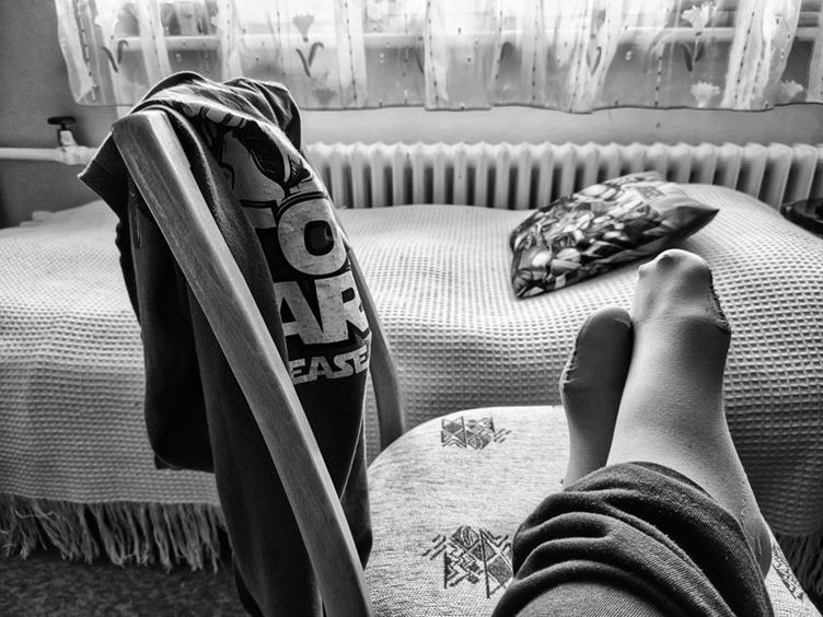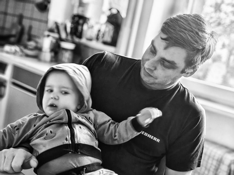 1. Vzbudil jsem se dost brzo a s kávou si užíval nepřítomnosti zbytku rodiny, který byl ještě v limbu 2. Ranní vítání 3. Z bezpečnostních důvodů si musela Pavla sednout přímo před lednici, do které se permanentně dere Fili 4. Anežka s Pavlou se šlechtitly na oslavu narozenin kamarádky z plavání 5. Na kafe dojeli Pája s Domim a dost mi ulehčili hlídání Fildy 6. Pája je ještě pořád hravá 7. Utahali toho lumpa tak, že mi ještě před jejich odjezdem usnul v rukách 8. Dnes jsem zapékal opět ve fritéze, jen v jiné nádobě 9. Po návratu z oslavy Pavla převlékala Fildu do pyžama a Anežka se chlubila obrázkama na čuni
