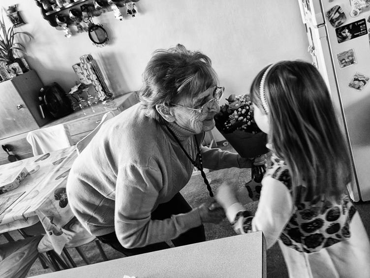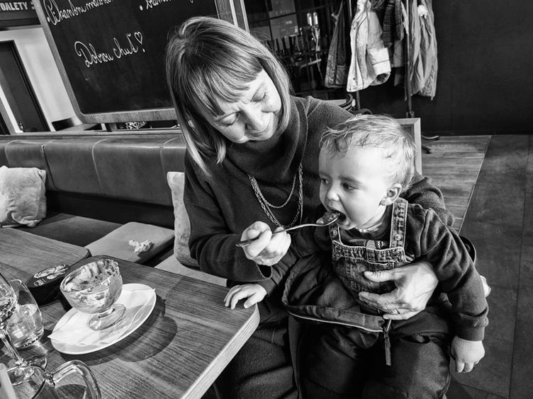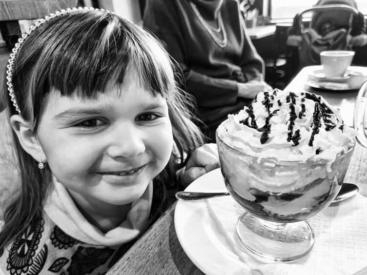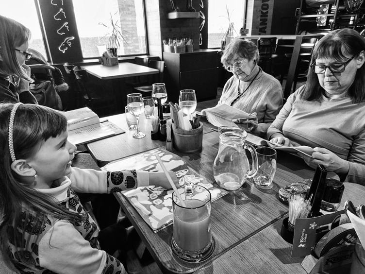 1. Při snídani mi holky vyprávěly o včerejší oslavě v Mouchnicích 2. Dnes jdeme na oběd k babiččiným narozeninám, ale popřáli jsme ještě doma 3. Zatímco dámy vybíraly, Filda spal a my s Anežkou jsme si hráli s Frozen nálepkami 4. Anežka si po obědě dala horké maliny se zmrzlinou 5. Když se Fili vzbudil, ještě trochu mu zbylo 6. Cestou k domovu jsme se stavili na chvililinku na houpačkách 7. A zapadli jsme ještě do kavárny/cukrárny Tizzi, kde bylo krásné podvečerní světlo 8. Doma jsme pouštěli Anežce "S tebou mě baví svět" a Fili na to chtěl vidět co nejlíp 9. Nakonec ale zase skončili v domečku