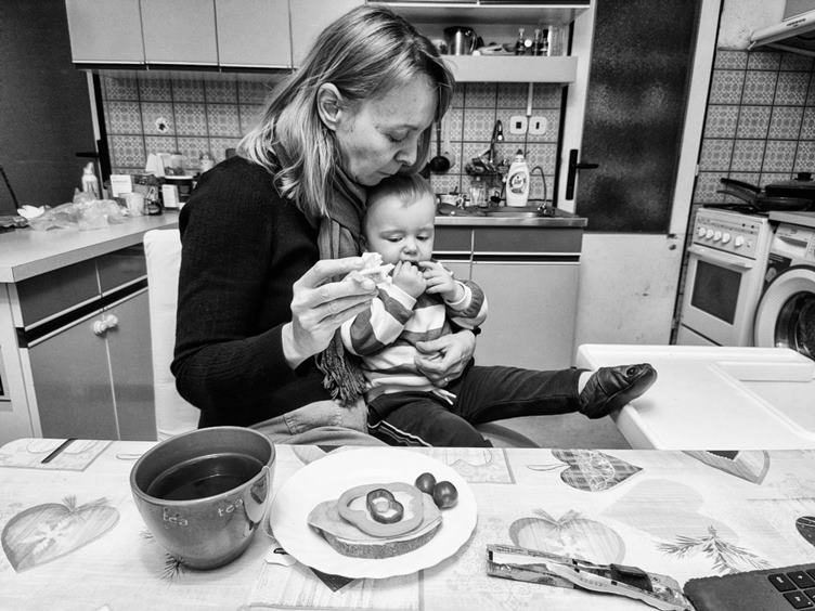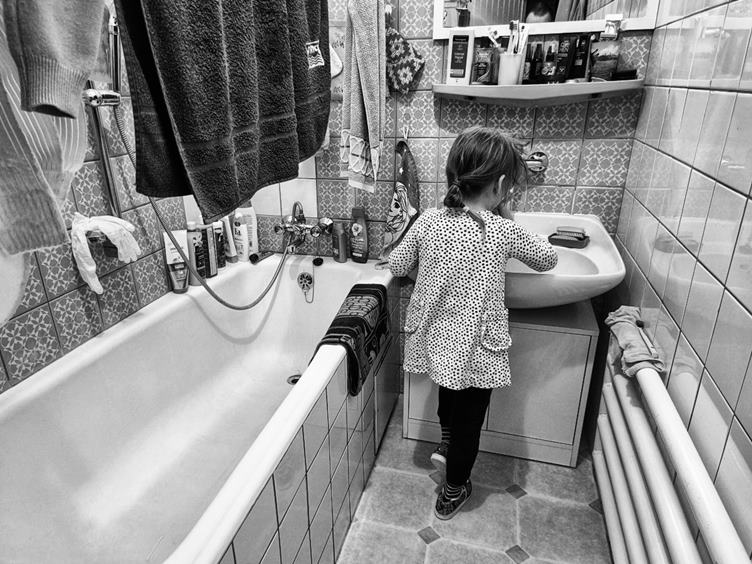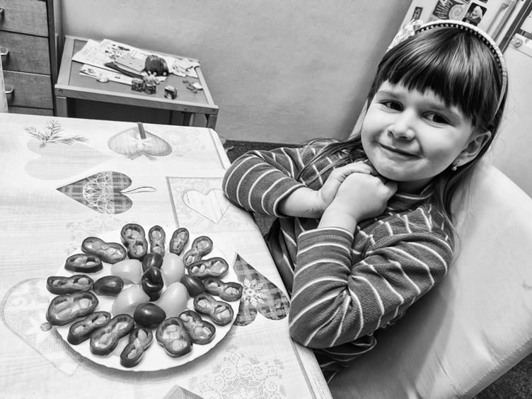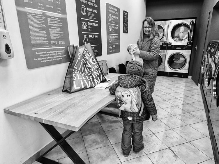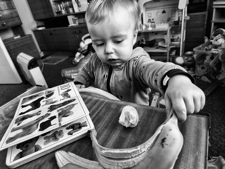 1. Anežka si ode dneška čistila zoubky v dolní koupelně, bo v horní je kvůli kotli ráno dost zima 2. Vzbudil se i Filípek a přebalování se trochu zvrhlo 3. Dopoledne si pořád chtěl prohlížet knížky, hlavně ty s pejskama 4. Cestou ze školky do Hýbánek jsme přepadli mámu v prádelně, doma bysme prádlo neusušili 5. Na Hýbánkách jsme byli překvapivě první 6. Když jsem čekal na Anežku potkal jsem Máru s Maxíkem 7. Stihl jsem si i prohlédnout krásnou výstavu obrazů Antonína Gavlase 8. Zase jsem se trochu vyblbnul s Anežčinou večeří ze zeleniny 9. Maminka přijela z fušky v Chropyni pozdě večer a hned si ji uzurpoval Filip
