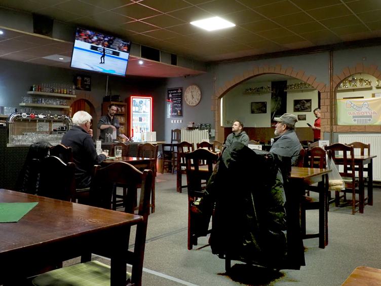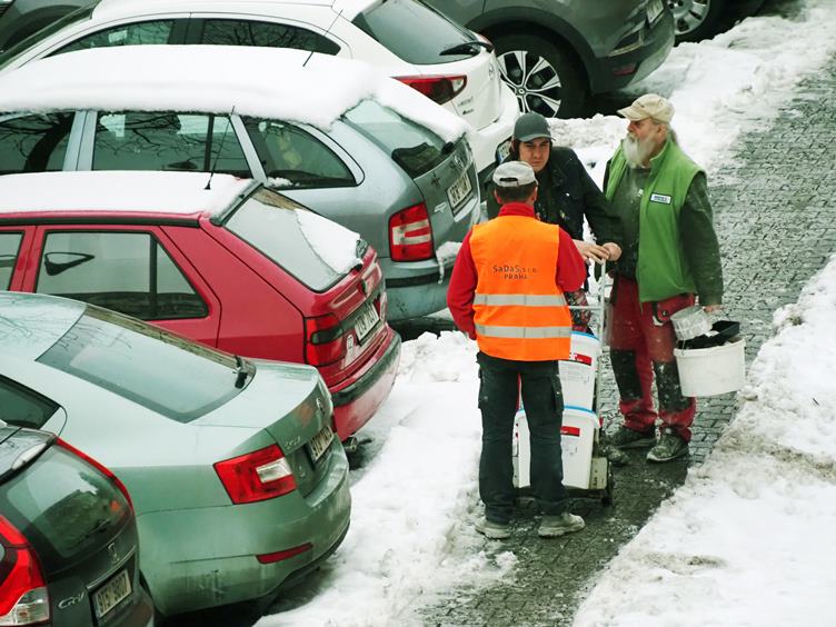 Ráno pracovní porada na chodníku...-Rád si připomínám bývalou slávu "Ledového království" na Pustevnách v Beskydech...K večeru s pivními kamarády v Autobaru; chodíme pravidelně, s občasnými výjimkami dvakrát týdně...žádné velké nalejvání, trochu pokecat, dvě tři pivka...a domů...