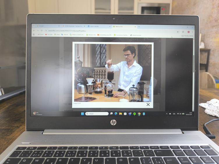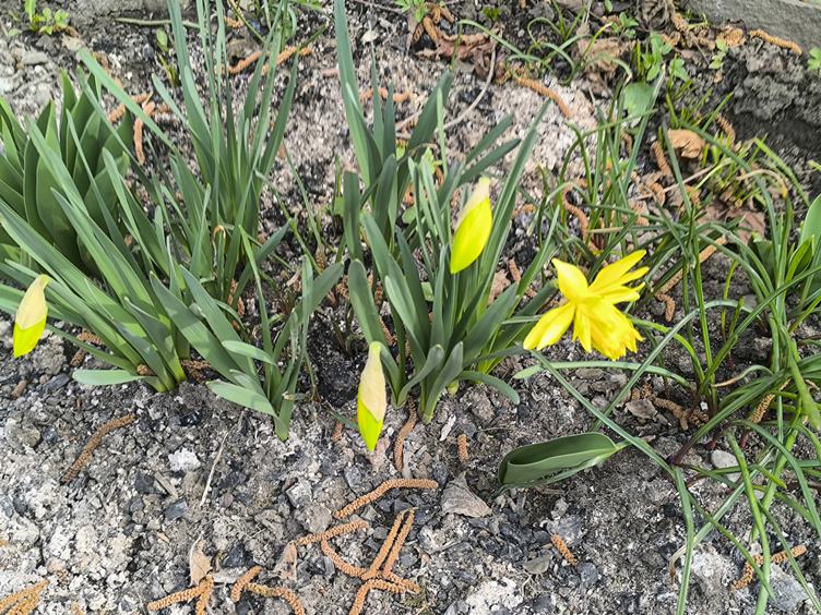 (1) Snídaně (2) Píši komentáře do WoL (3) Posekám dřevo a větve naložím do kontejneru, (4) Pro dnešek mám hotovo, dostal jsem chuť na víno (5) Tonička s Jardou byli asi na návštěvě u Pavla (6) Narcisy už začínají kvést (7) Čtu si (8) Hela má chuť na pivo, tak se potkáváme v Kačabaru (9) Je jich tu víc