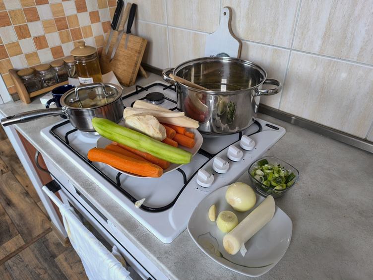 (1) Pro pečivo (2) Hela jde popřát Zdence k narozeninám a já vařím zeleninovou polévku a připravím okurkový salát (3) Oblíbili jsme si tuto APu (4) Moje vaření. Hela měl mít zkoušku v sobotu, ale přesouvá se na neděli, získá další den na učení. Jdeme se projít do Bělského lesa a na (6) Trolla, jen jednoho, bo učení (5) Na disk golfu se něco staví (8) Není nad vzduch s Jihu (9) Venkovní sport
