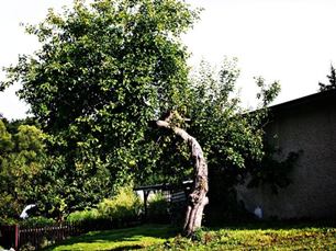 ráno s močí,kouknem na starou jabloň,po cestě očista,natřít plotovky,zkulturnit předzahrádku,trochu sprchlo,duha malá,díra byla velká,provětrat Raymana a před ulehnutím pozorovat nebíčko