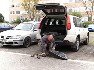 Myč oken se tváří jakoby stál kousek nad zemí a mě z toho běhá mráz po zádech, kráááásný barvený Barrandov, hasičské triko má trefný nápis a zááávidím (v dobrém :o) to velké rodinné auto.