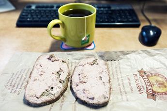 1) Lukášek vychutnává ranní dávku léků. 2) Já v práci vychutnávám svou snídani. 3) Musím s kolegyní vyřídit naléhavou záležitost. 4) Kontrola prací na stavbě. 5) Kolega si u nás ubalil cigárko. Když jsem na něj vytáhl foťák, tak pózuje, jako že si zapálí. 6) Kolegyně má dceru Terezu a tak jí k dnešnímu svátku koupila kytici. 7) Konečně zase doma. S Tomem si hrajeme na baf!, kdy vykukuje zpoza mých zad střídavě na jedné a pak na druhé straně. 8) Povinná údržba. 9) Uspávání Lukáška. Dělá, jako že naslouchá.