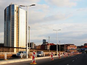 Dnes ráno mi Jindra řekl, že potřebuje fotku do firemního časopisu. Udělali jsme ji tedy na balkóně. Byla ještě skoro tma a mlhavo, což názorněji ukazuji na dalším snímku z cestování do práce. Dnes slavil padesátiny Leoš, podle mě docela mladík! Přijímá gratulace na trojce vpravo. Zpívalo se, hodovalo a děvčata byla naparáděná a veselá. Po letech jsem se potkal s některými známými a kamarády z centrálního registru obyvatel. Zpátky domů mě odvezl Jindra. Bylo po osmé večer a slunce, oproti ránu, jasně svítilo.