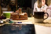 1.Rano je chladno a vše je orosené. 2.Barevné listí opadalo a už vypadá svět smutnější. 3.Jsem těsně na hranici mlhy, která se válí v údolí. 4.Dneska čekáme u doktora nějak déle. 5.A pak hurá na nákupy. 6.Po dvouhodinové túře mezi obchody upadneme do pohodlného křesla kavárny... 7...a něco dobrého si mlsneme. 8.Konečně si Jana může založit ruce. 9.Ber, dokud dávám!
