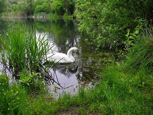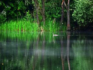 Poděbrady u Olomouce.Rybník, o němž jsme dosud nevěděli. Studuji mapu a plánuji cestu. Dcera jede s námi.Je po dešti, blátíčko na cestách, ale zeleň je čerstvá. Procházka po břehu,na větvi suchého stromu zpívá kos. Pokračujeme přes můstek na ostrůvek. Trochu suchého pečiva pro labuť, v dálce pluje potápka roháč.Líbilo se nám tady.K večeru se ještě podíváme, jak pokračuje stavba mostu. Termín dostavby se krátí.
