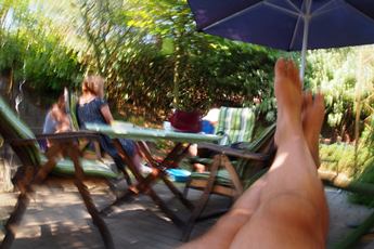 Za chládku se jdeme projít a pořídit snídani pro hlodavce, na kafe mi někdo útočí, pod kamenem nemusíme ani moc topit jaký je hic, beru zavděk i vodou, lenošení a nedělní odjezd,