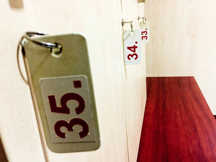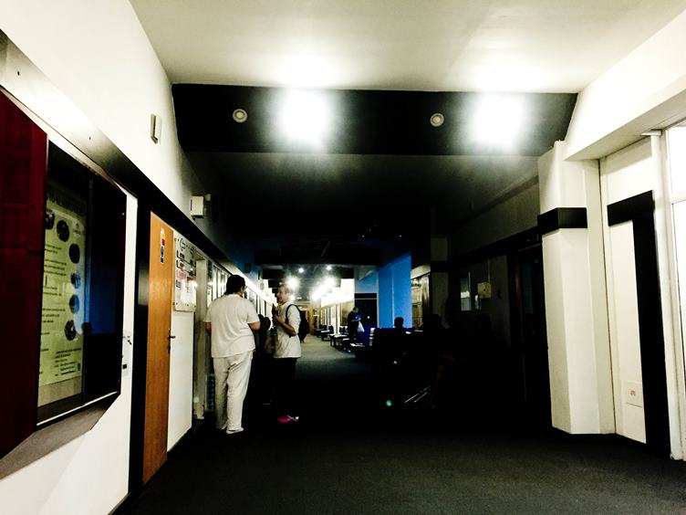 Snídám sójové pečivo. Výhled z 1. patra. Zase běžím po schodech. Na chodbě. Je zima a na pokoji záclony dělají hezké zátiší. Odpoledne jdu do skupinkového bazénu na jodobromovou koupel :-)