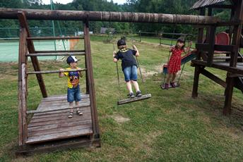 Doobeda sa deti pohrali. Po odubytovaní sme sa šli najesť do Brezna. Našli sme dobrú reštauráciu s detským ihriskom.