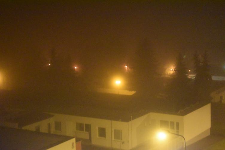 vybetonovali díry v mezipatrech, zamlžené ráno, balím první krabice s cukrovím, nainstalované vnitřní dveře výtahu...zamlžený večer