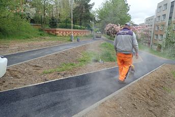 Pro materiál, asfaltujem a pak pokračujeme s obrubníky, jedu do Písku k mladým začistit okna, pozdravím se s Mikuldou, pěkná práce :-), domů večer