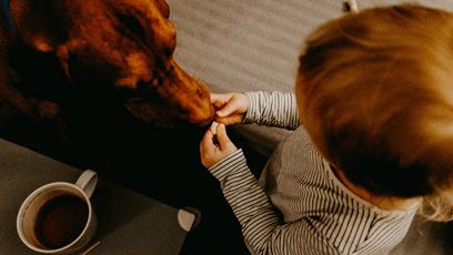 Hrátky s moukou, společný oběd u stolu a dlouhý tmavý večer si zkracujeme venčením Caira.