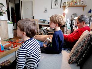 1- vnoučci přijeli už včera večer, takže dnes od rána se prohání v obýváku Kubíčkova želva... 2- baví je stavět... 3- Matýsek objevil nový druh želviček... :-D 4- venku celý den prší, je chladno, tak jsme doma... 5- koukáme ze záznamu na pohádku "S čerty nejsou žerty"... V úvodu tam armáda střílí a kluci se ptají proč? Maty pak říká, že by nikdy nechtěl být voják a válčit a Kubík zase k našemu překvapení, že by chtěl být voják. A na otázku proč, to upřesnil: Já bych chtěl být jejich šéf a nařídil bych jim, aby s tím válčením přestali... wow... Jo a děda nespí, ale čte... :-D 6- povídáme si... 7- Hrášková a palačinky byly k obědu... 8- k večeru se udělalo hezky... 9- dočetla jsem... (Dík Milane za tip, kniha je výborně napsaná a moc mě bavila...)