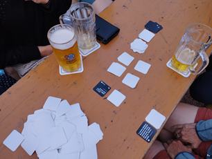 K ránu skutečně pršet začalo, a tak jsme vyrazili na cestu v pláštěnkách. S Pepou se fotíme, jak se fotíme. Došli jsme k nejkrásnější říčce na světě a dostáváme od šéfů opět patnáctiminutovou pauzu na koupání. Trvá nám to déle, protože je to vážně skvělý, alespoň mají ostatní čas na to si vyčistit zuby. :) Přicházíme do Berchtesgadenu, kam se už moc těšíme. NA KAFE! Akorát si v němčině umí správně objednat jen někteří z nás. Ve městě se stavujeme ještě na teplý oběd a nákup zásob na dalších pár dní, pak ale vyrážíme dál. Dnes spíme v kempu a máme štěstí - mají tu pro nás místo i s výhledem. Dostala jsem od Klárky vůni do stanu. Po takové vyčerpávající cestě mě to dojalo víc, než bych čekala. Večer vyrážíme z kempu na procházku ke Königsee a, jak je naším zvykem, do hospody. Pepa věší naše ubytovací čipy z kempu na místní keř a říká tomu Vánoce. Hrajeme Karty proti lidskosti a vyhrává Pepe s jeho neochvějným smyslem pro humor, nikdo jsme netipovali jinak.