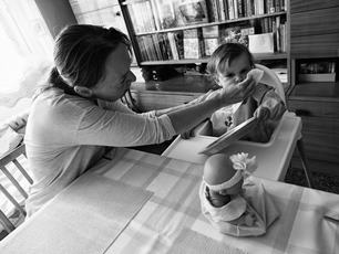 1. Ráno v kuchyni 2. Anežka ujídala domácím mazlíčkům 3. I přes lehkou dopravní komplikaci jsme v klidu dojeli do Dobšic za Přémou 4. Přivezl jsem mu na vyřezávání dřevo z naší meruňky, vyzvedl si fotky a Anežka dostala bábovku 5. Bodejť by se pak neskamarádila s hospodským Sapíkem, když jí dal takovou dobrotu 6. Na cestě domů jsme se stavili v další výborné restauraci U Bazalů 7. Poslední pauzu jsme si dali na benzince ve Vyškově 8. Tohle dřevěné nádobí dostala Anežka od Přémy 9. A hned ho otestovala při večeři