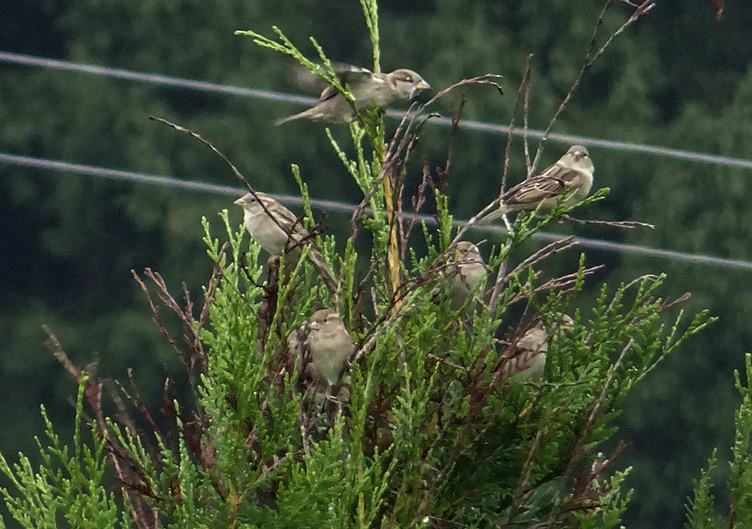 Blanka spase leckterý kout v zahradě. Vrabčáci z naší chalupy. Bylo sucho, rostou jen lišky. V lese je fajn. Kapky po dešti. Jedu vlakem od Ostravy. Pivo.