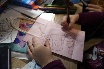 Po práci deti ozdobili darčkové tašku a zablahoželali sme Ľudke k narodeninám.