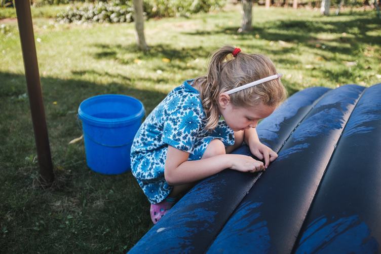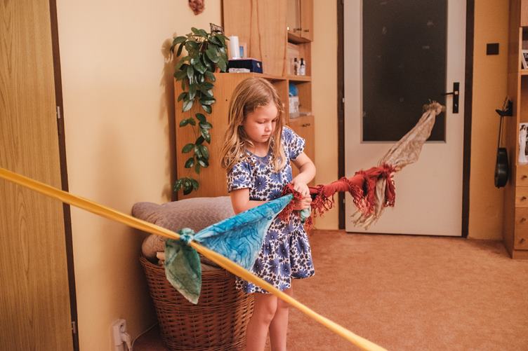 Nějak jsme se nemohli vypravit, ale před obědem jsme dorazili do Tasovic. Vzal jsem sebou matraci, abych našel společně s Eliškou pomocí mýdlový vody dírku. A taky, že jsme našli! Naši mají návštěvu Petru a Petra. Petra hrála dětské role. Třeba hrála v „Ať žijí duchové“. Zahráli jsme s taťkou šipky a vyrážíme zpět do Brna. V Lechovicích vyzvedneme speciální víno, které budeme mít na Vánoce. Taky jsme se museli stavit v Decathlonu koupit Elišce taneční botičky, ale nesehnali jsme. Zato já jsem si sehnal dva páry bot a doma vyhodil zimní boty Alpinepro, který jsem nosil 12 let! Poděkoval jsem jim a odnesl je slavnostně do popelnice. Eliška si večer před koupačkou moc tvořivě hraje. :)