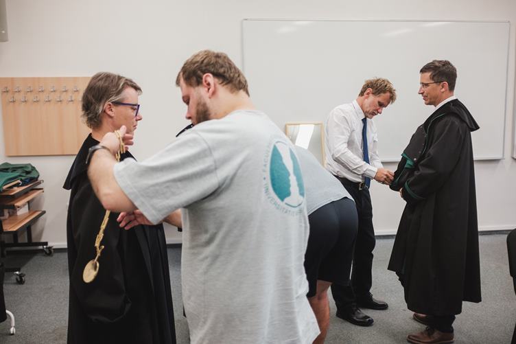 Ráno vyrážím fotit imatrikulace na Fakultu sociálních studií. Mám štěstí, protože dnes je zataženo a nebude se mi míchat denní světlo s umělým. Překvapilo mě, že nakonec jsou 3 běhy, ale jsem za to moc rád, protože si víc vydělám. Venku skoro celý den hustě prší a já měl oběd v kantýně. Nejsem ještě úplně ve formě, a tak šetřím síly. Po návratu domů jsem se najedl a rychle dokončil fotky, které jsem včera zapomněl odevzdat pro MjUNI. Přijeli naši na otočku, tak si dám s taťkou kafe. Máma šla cvičit, tak si hraju s Eliškou. Učím ji psát a hrajeme si, že máme kapelu. Já hraju na kytaru a ona na klávesy. Mám dnes dobrý pocit z nafocených imatrikulací. Tento měsíc si budu moct odložit nějaké peníze. :)