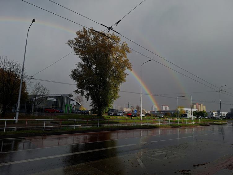 Fifejdy se sice opravují, chodníky by to místy potřebovaly přednostně.. Podzim postupuje rychle.. Barvy venku i doma, bude bramborový guláš.. Noha dneska trne a bolí.. Nad naším domem se honí děsné mraky.. Přihnala se přeháňka a kroupy. Jela jsem na malý nákup a na zastávce jsem uviděla krásnou duhu.. A v obchodě už začali šířit vánoční šílenství. No jo, nejvyšší čas..