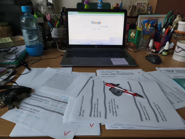 Lávka a škola po ránu ... Mám mraky práce ... Jdeme na testík ... Využíváme telefony jako cestu ke zdroji informací ... Společná kontrola se sedmáky ... A copak nás to čeká? ... Adince jsem přinesl rybičky ... Pomáhá mi na zahradě ... A večer je náš.