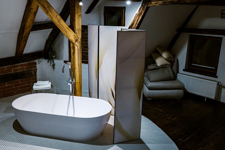 5.6. se soumrakem se jdeme ubytovat do Svamberskeho penzionu, mame krasne apartma v podkrovi
